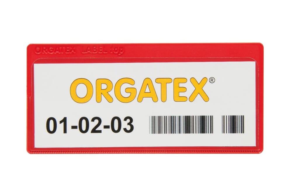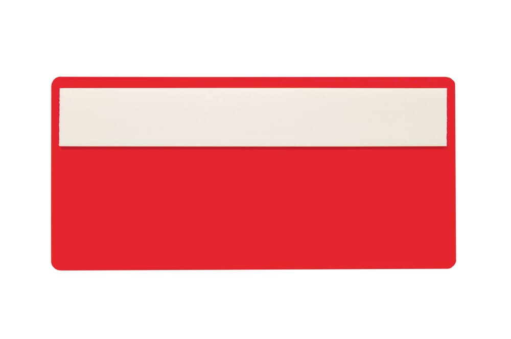 Format / Größe: 50 x 107mm (H x B); Material / Farbe: Hart-PVC, rot Ausführung: oben / seitlich offen, 1 Schaumklebestreifen